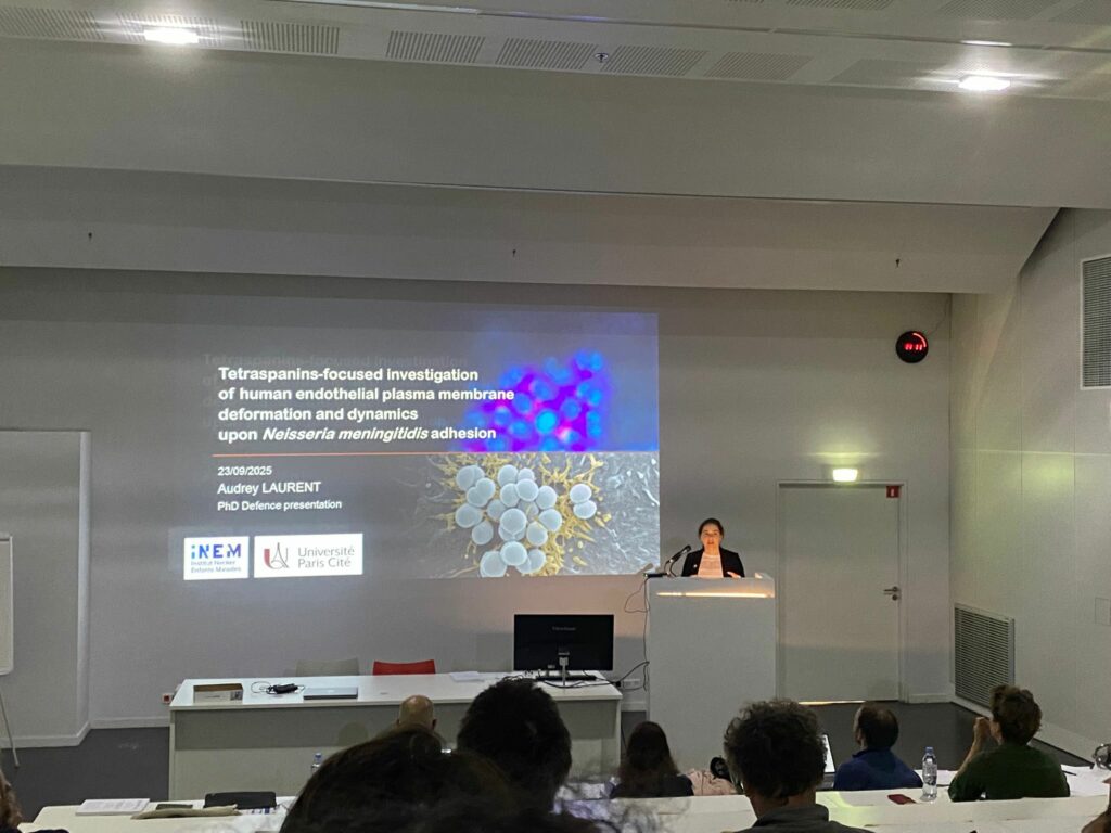 Soutenance de thèse de Audrey Laurent-Granger 23/09/2025. Quelle journée pour Audrey qui a brillament soutenu sa thèse aujourd’hui. U Tetraspanins-focused investigation of human endothelial plasma membrane deformation and dynamics upon Neisseria meningitidis adhesionDirigé par Mathieu Coureuil